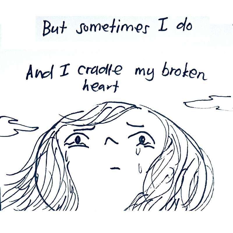 I made this comic during my SAW workshop on comics with heart. I discovered that my definition of heart is synonymous with vulnerability. I thought about re-inking it because I drew it with pen, while talking, on camera and it’s a little wonky. But that’s also vulnerable. So I kept it mostly unchanged.